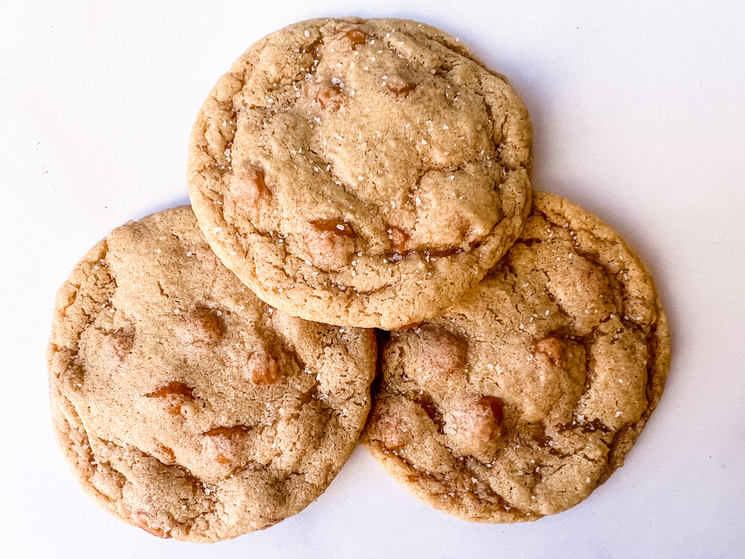 Salted Caramel Cookie Mix by Southern Roots Sisters is a delicious and easy-to-make cookie mix that combines the rich, buttery flavor of caramel with a hint of sea salt to create a unique and addictive cookie. Made with high-quality ingredients, this mix creates cookies that are soft and chewy on the inside and slightly crispy on the outside. Simply mix the ingredients together and drop spoonfuls of the dough onto a baking sheet to make cookies that are perfect for any occasion. Whether you're a seasoned baker or a beginner, this mix is sure to become a staple in your kitchen. Try topping the warm cookies with a sprinkle of flaky sea salt for an extra touch of indulgence. A medium #40 size cookie scoop is recommended for all Southern Roots Sisters cookie mixes, and this mix makes about 30 cookies using this standard scoop.